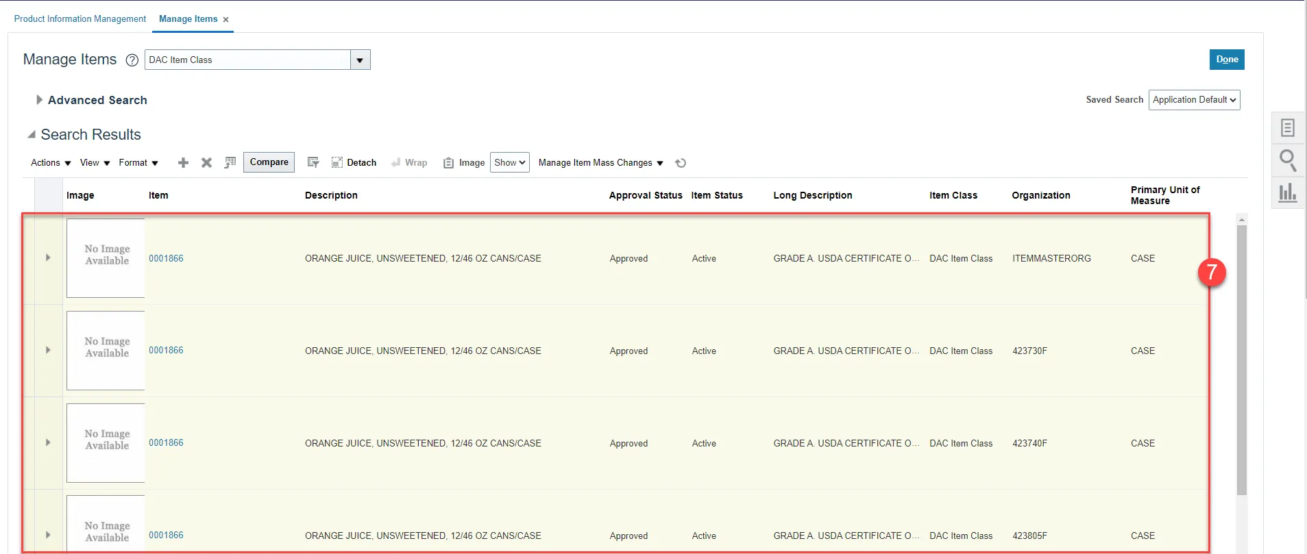 Step 47. The below item attributes will update to No when an item status is made inactive from active for Master Organizations.