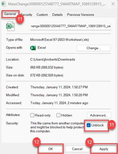 Step 11. Once the spreadsheet is downloaded, before opening the file, select the spreadsheet on your computer and right-click the file and select Properties.