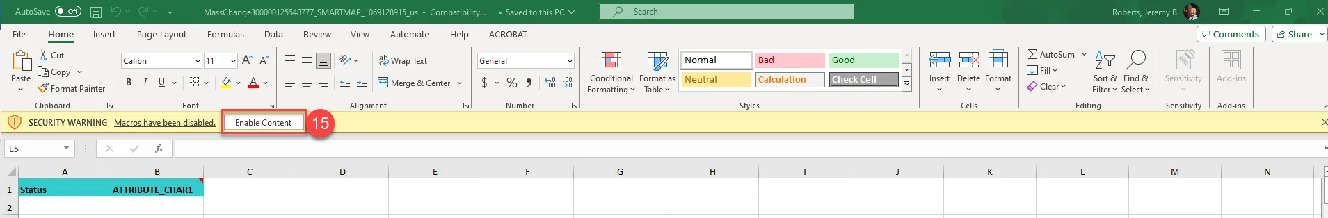 Step 15. Click Enable Content on the Excel spreadsheet if necessary.