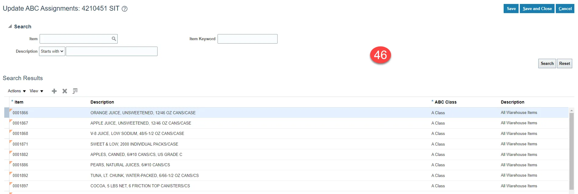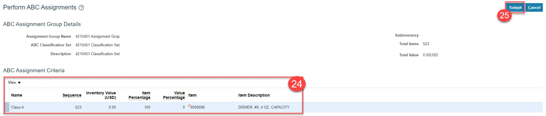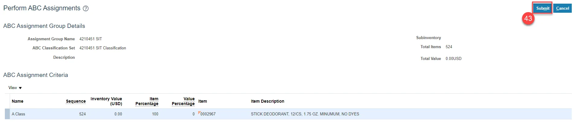 Step 46. Validate if the new item(s) are included in the ABC Assignments Group by clicking on the Update ABC Assignments button.
