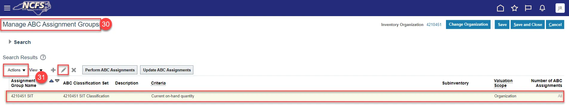 The purpose of this Quick Reference Guide (QRG) is to provide step-by-step explanation on how to setup and manage Inventory ABC classes, Assignment groups, and Classification Sets for the entire Warehouse Organization in the North Carolina Financial System (NCFS). This QRG also covers how to Create a Cycle Count, Record Cycle Count Sequences, Approve Cycle Count Sequences, Review Inventory Item Quantity Updates, Recount Inventory Items from the Cycle Count, Cancel a Cycle Count, and Review the NC Cycle Count Variance Report (RPT-IN-003) in NCFS.