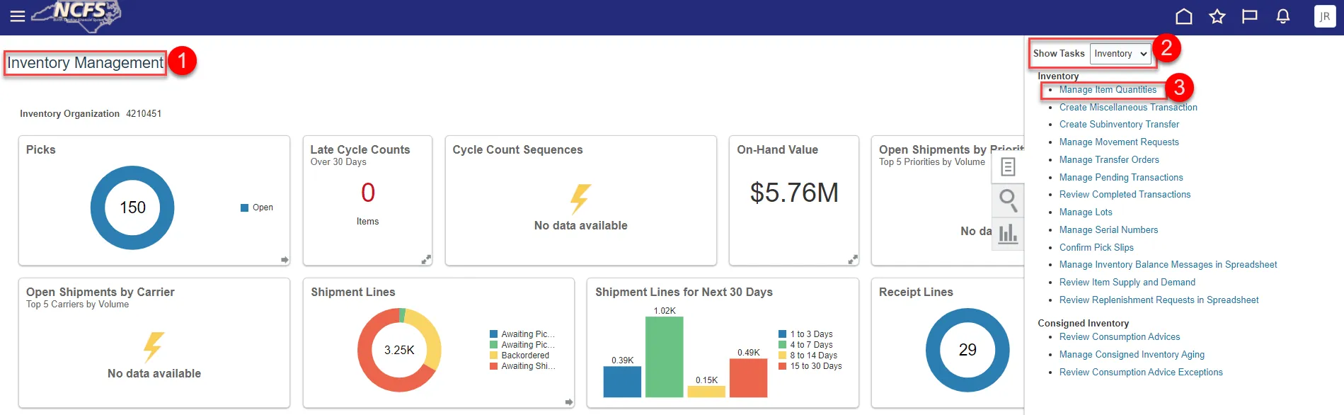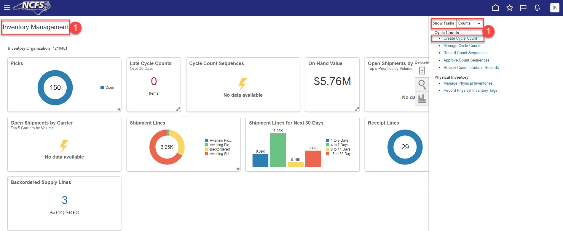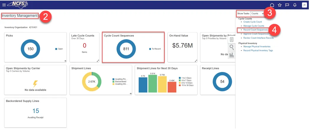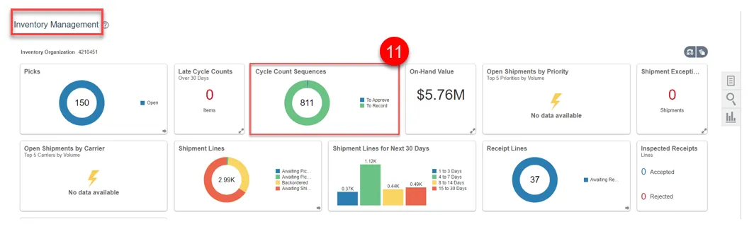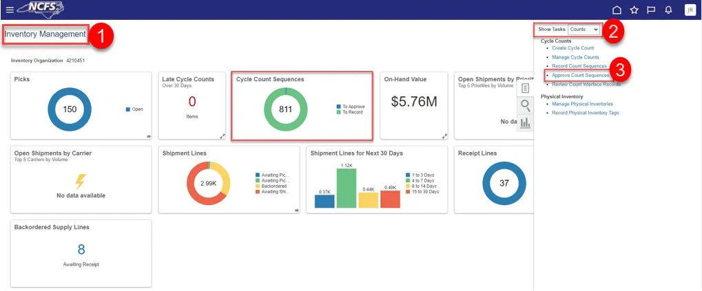 Step 11. You will be redirected to the Inventory Management Dashboard. You can see the number of Cycle Count Sequences waiting approval.