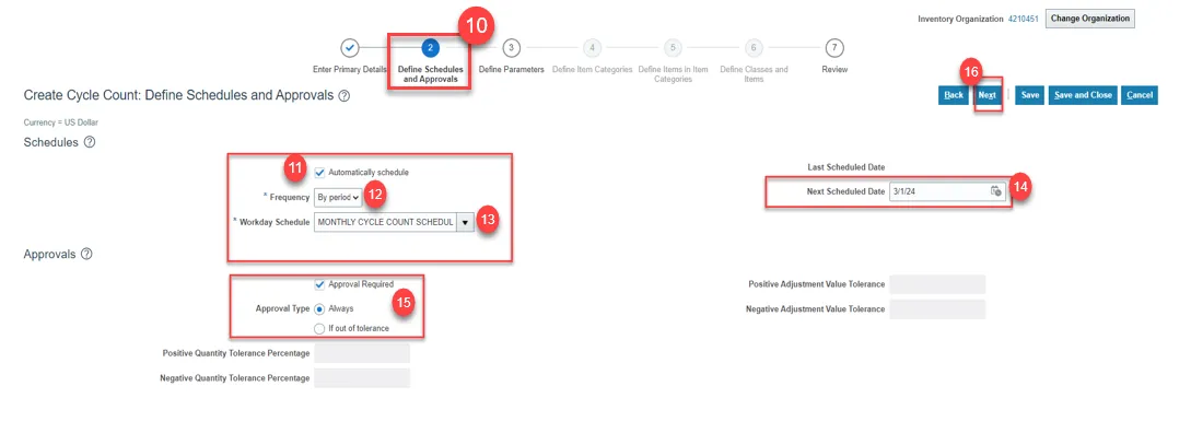 Step 13. Select Monthly Cycle Count Schedule for Workday Schedule.