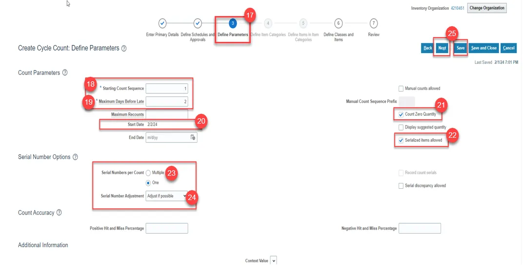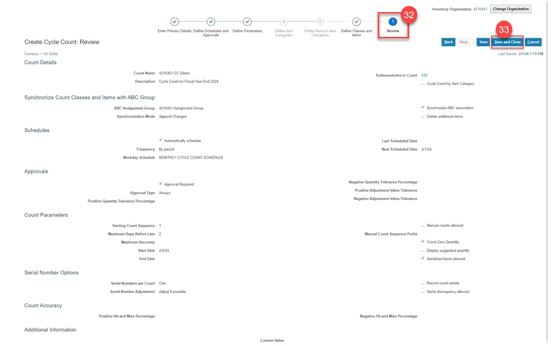 Step 32. Review all the Cycle Count Details selected.
