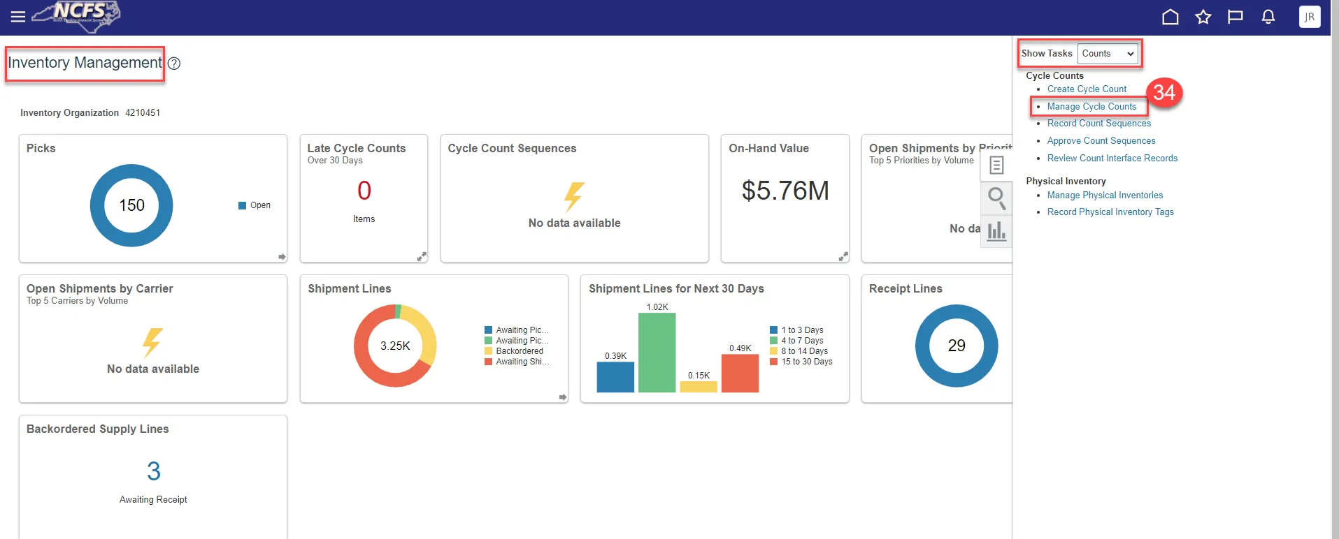 Step 1. Navigate to the Manage Cycle Counts screen.