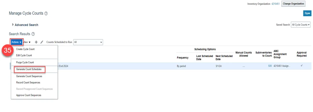 Step 35. Click Actions and select Generate Count Schedules.