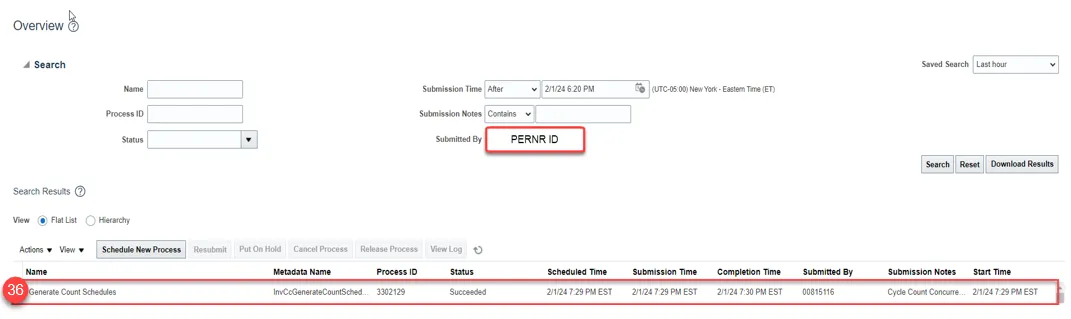 Step 36. Check Scheduled Processes to see when Generate Count Schedules is completed.