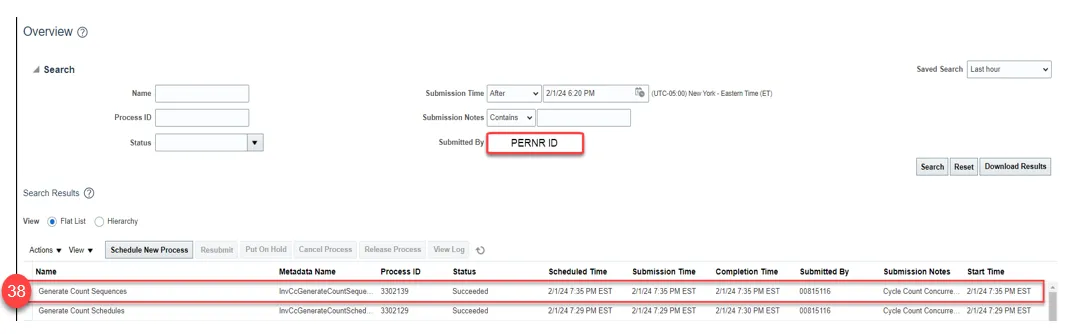 Step 38. Check Scheduled Processes to see when Generate Count Sequences is completed.
