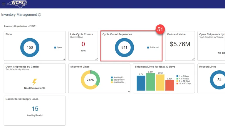 Step 51. The Inventory Management Dashboard will now show Cycle Count Sequences.