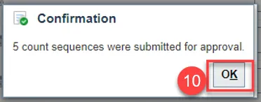 Step 10. A Confirmation pop-up window will appear letting you know how many count sequences were submitted for approval. Click OK.