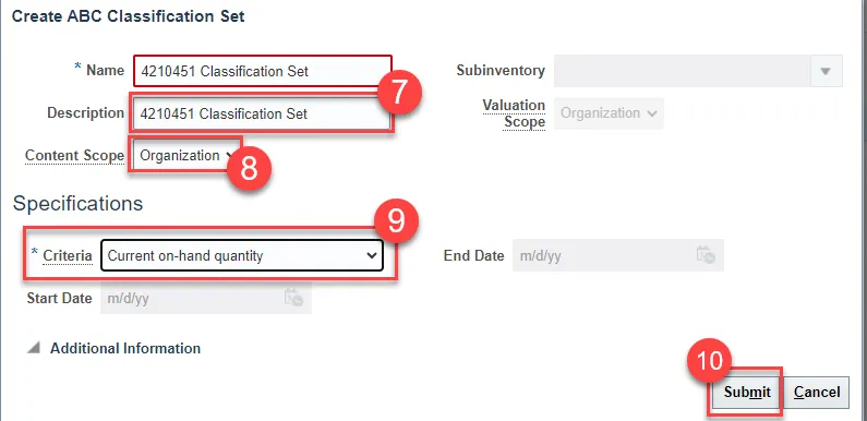 Step 1. My Enterprise>Setup and Maintenance>Inventory Management>Manage ABC Classes