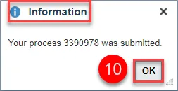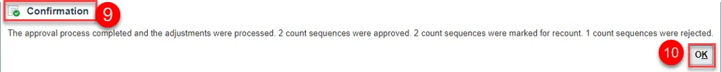 Step 9. A Confirmation pop-up window will appear letting you know how many count sequences were processed for each Count Sequence Status.