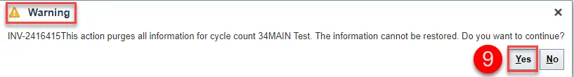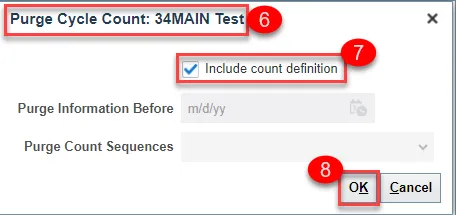 Step 6. A Purge Cycle Count window will appear for the selected cycle count.