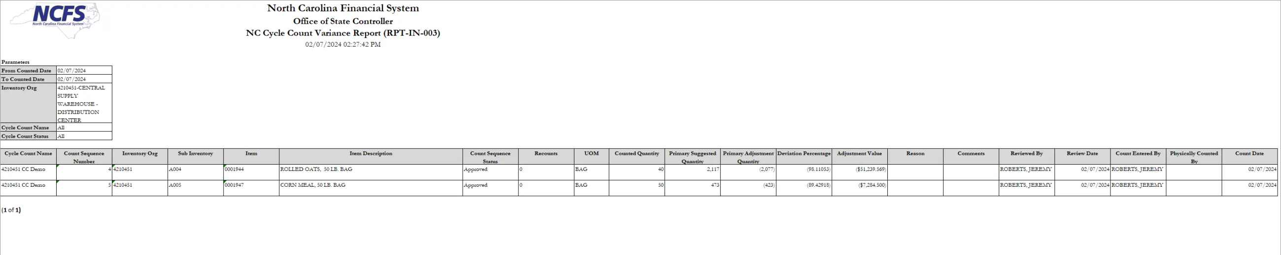 NC Cycle Count Variance Report (RPT-IN-003)