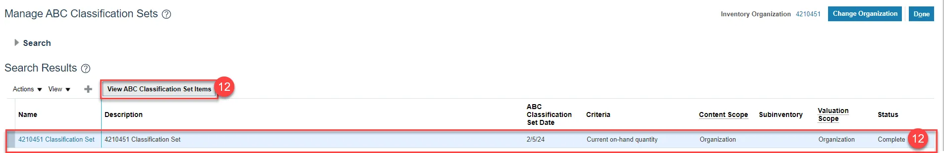 Step 12. Once the process is complete, the status will change to complete, and the View ABC Classification Set Items button will populate and be clickable.