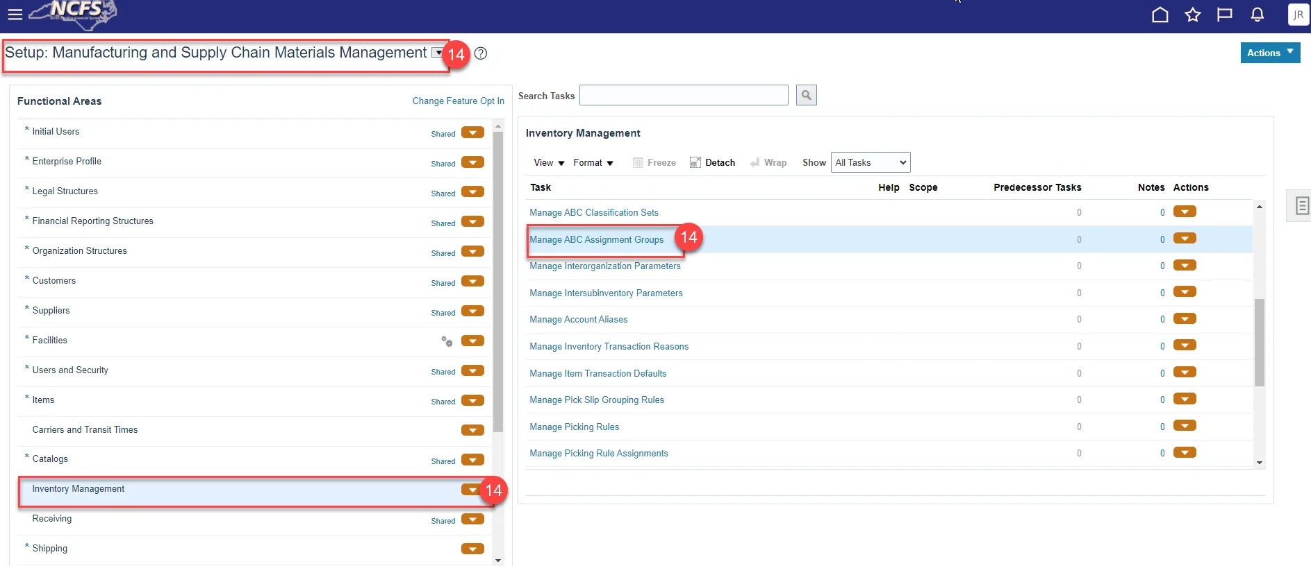Step 14. My Enterprise>Setup and Maintenance>Inventory Management>Manage ABC Assignment Groups