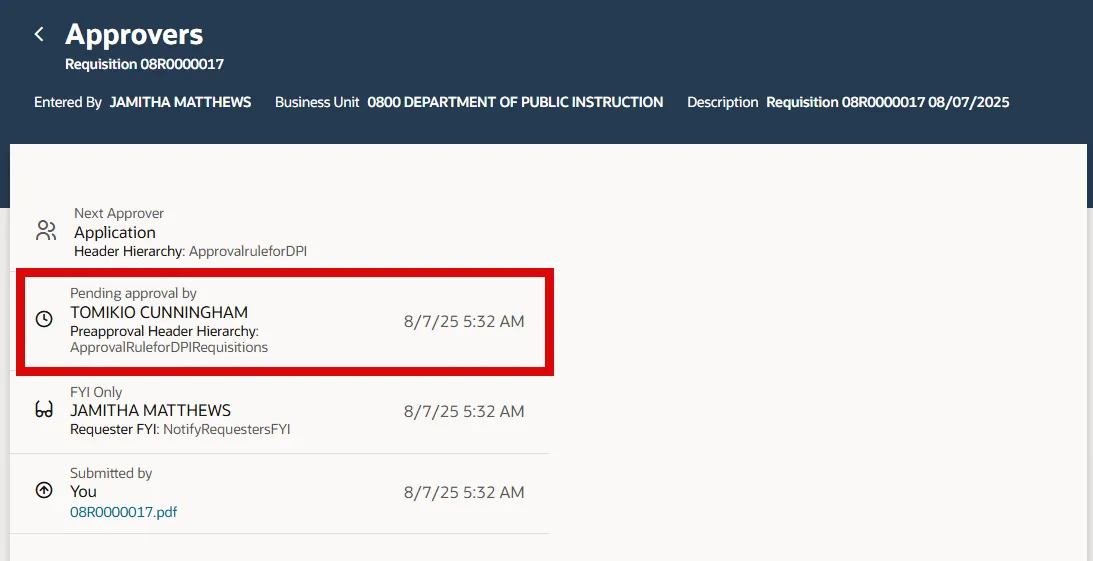 Step 38. Once approved, the SSP Requisition status will update to Approved.