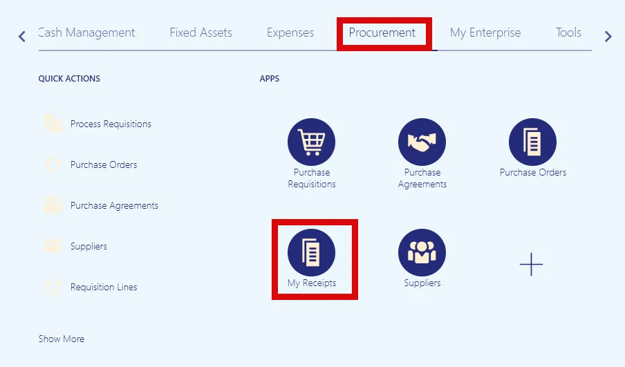Step 1. Select the Procurement tab on the Home page.