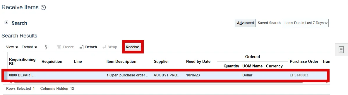 Follow these steps below to receive the order against the Purchase Order in NCFS. There are 17 steps to complete this process.