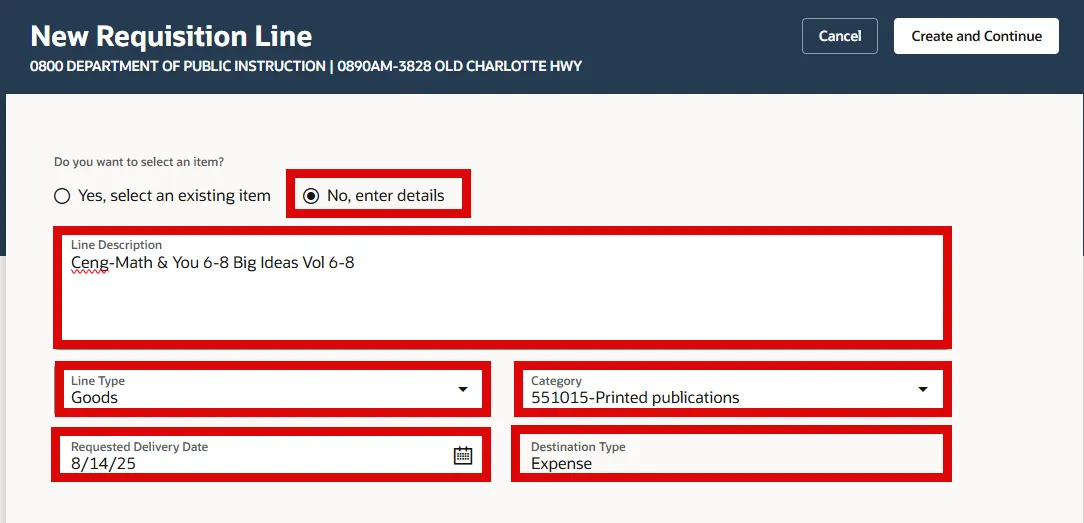 Create a Non-Catalog Requisition