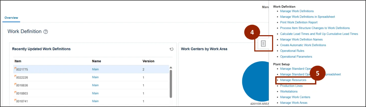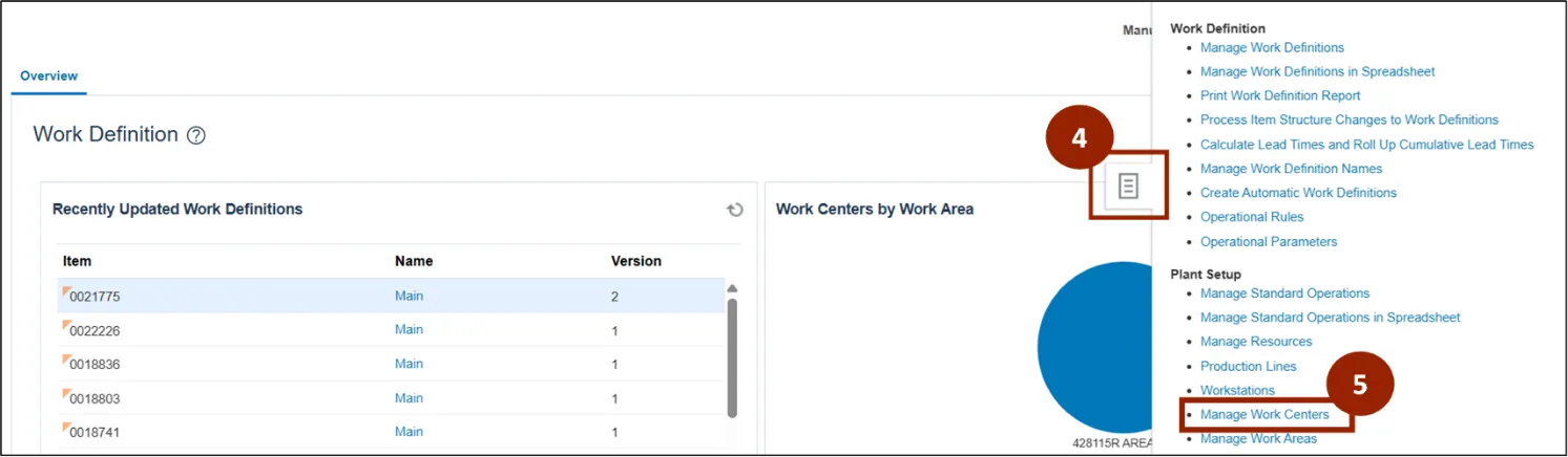 Step 5. Select Manage Work Centers in the Plant Setup section.