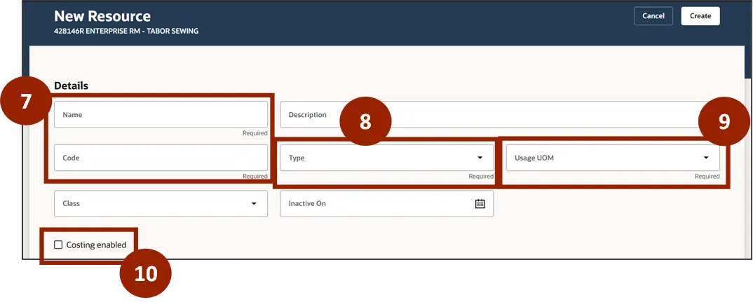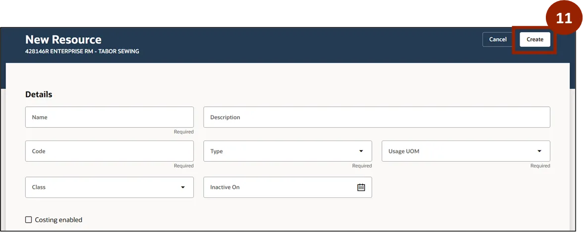 Step 10. Select the Costing enabled checkbox if costing is being tracked.