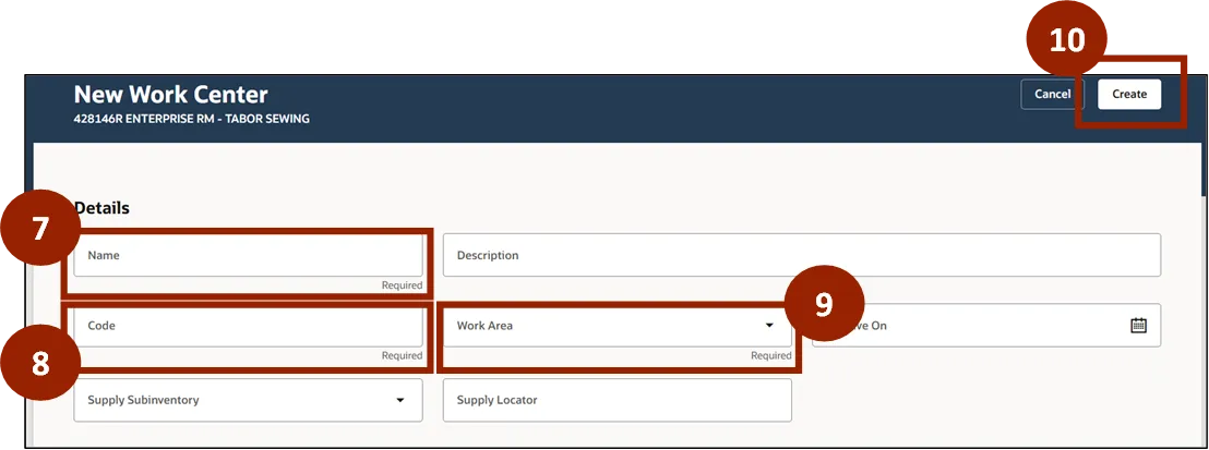 Step 6. To set up a new Work Center on the Work Centers page, select Create Work Center.