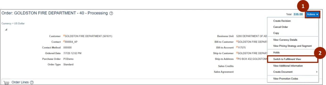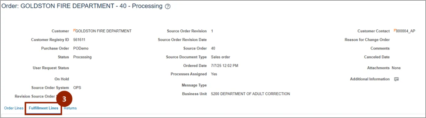 Step 3. Within the Fulfillment View, click the Fulfillment Lines tab.