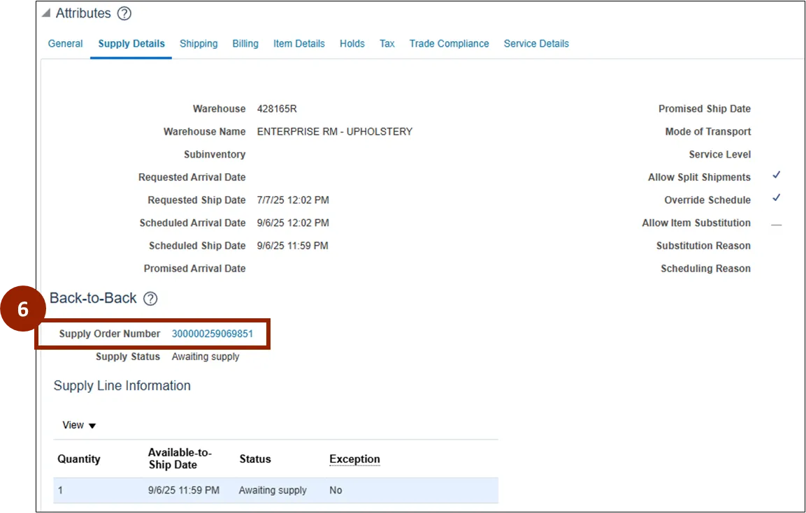 Step 5. In the Fulfillment Line: Details section, click the Supply Details tab.