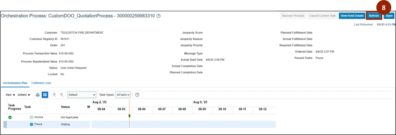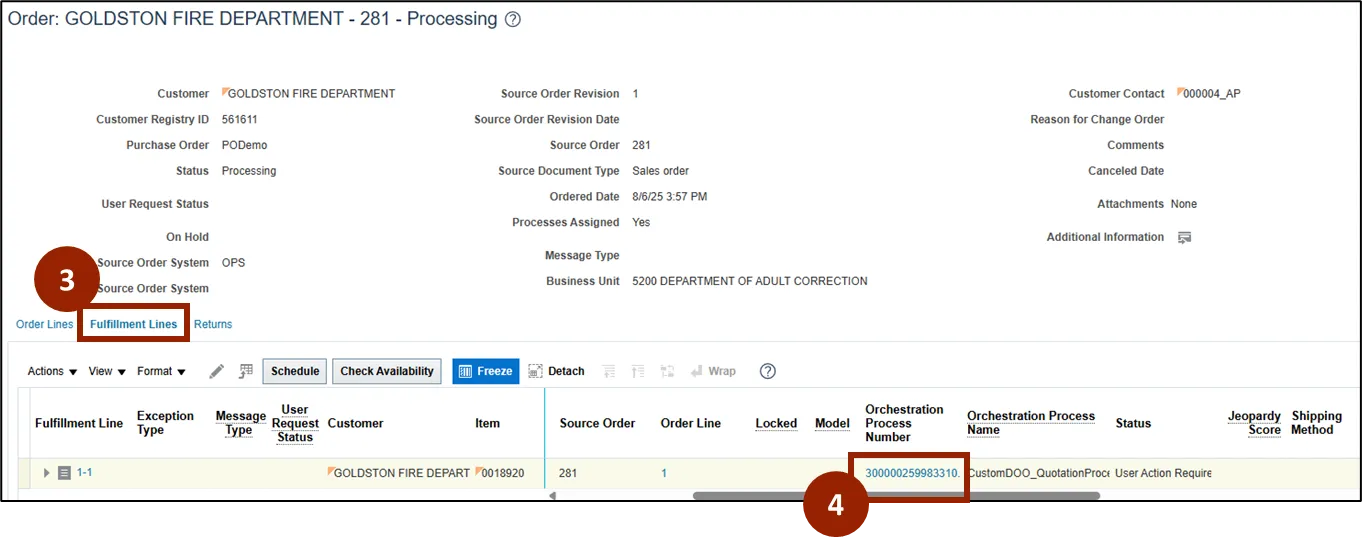 Step 4. Click the Orchestration Process Number link for the desired order line to be released.