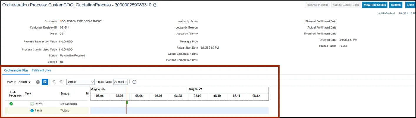 Note: A quotation order type will have two tasks under the Orchestration Plan tab.