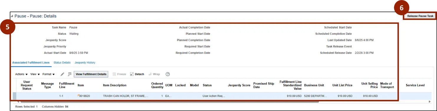 Step 5. Scroll down to the Pause – Pause: Details section to view additional details.