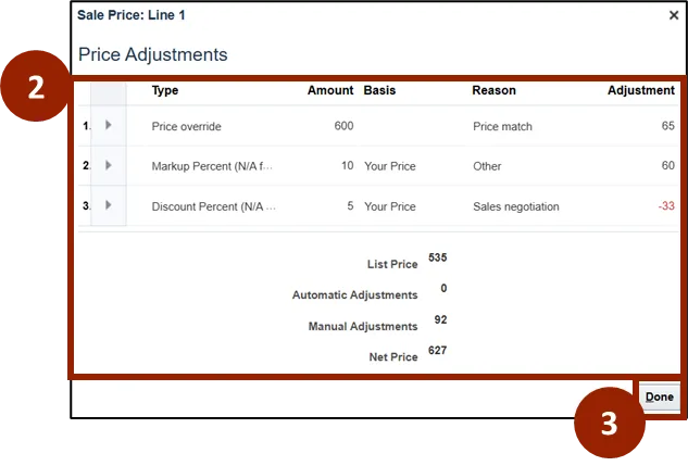 To validate the price adjustment of the Order Line using the Amount column, follow these steps. There are 3 steps to complete this process.