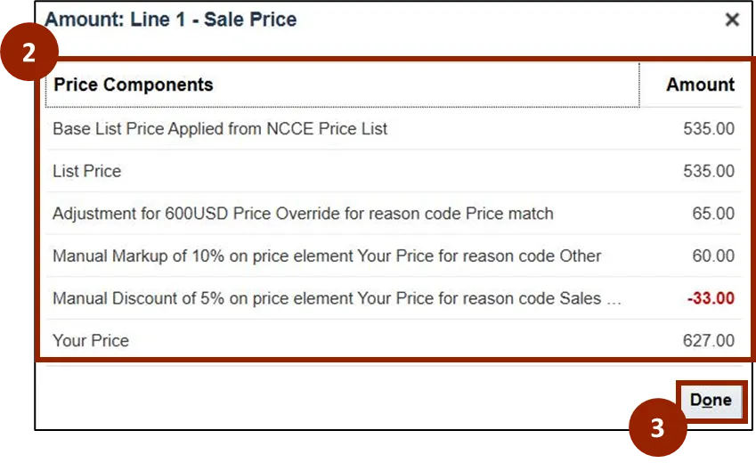 Note: If the Your Price icon is not visible, no price adjustments have been done on the line.