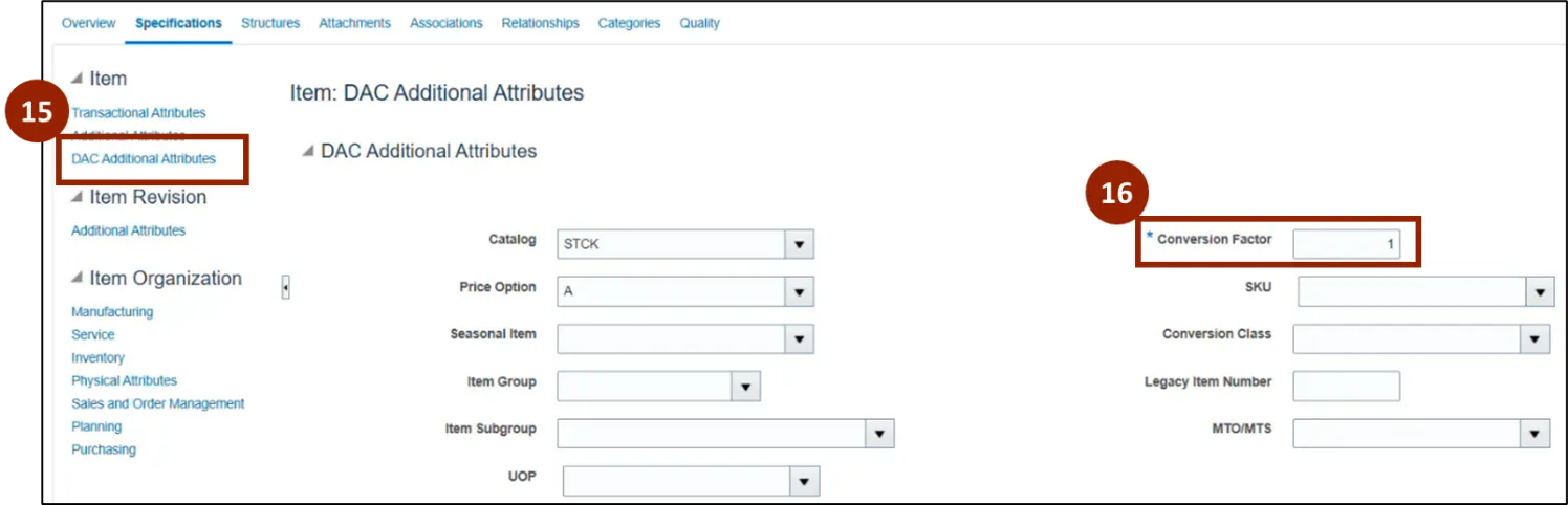 Step 15. Navigate to the Specifications tab and select the DAC Additional Attributes link.