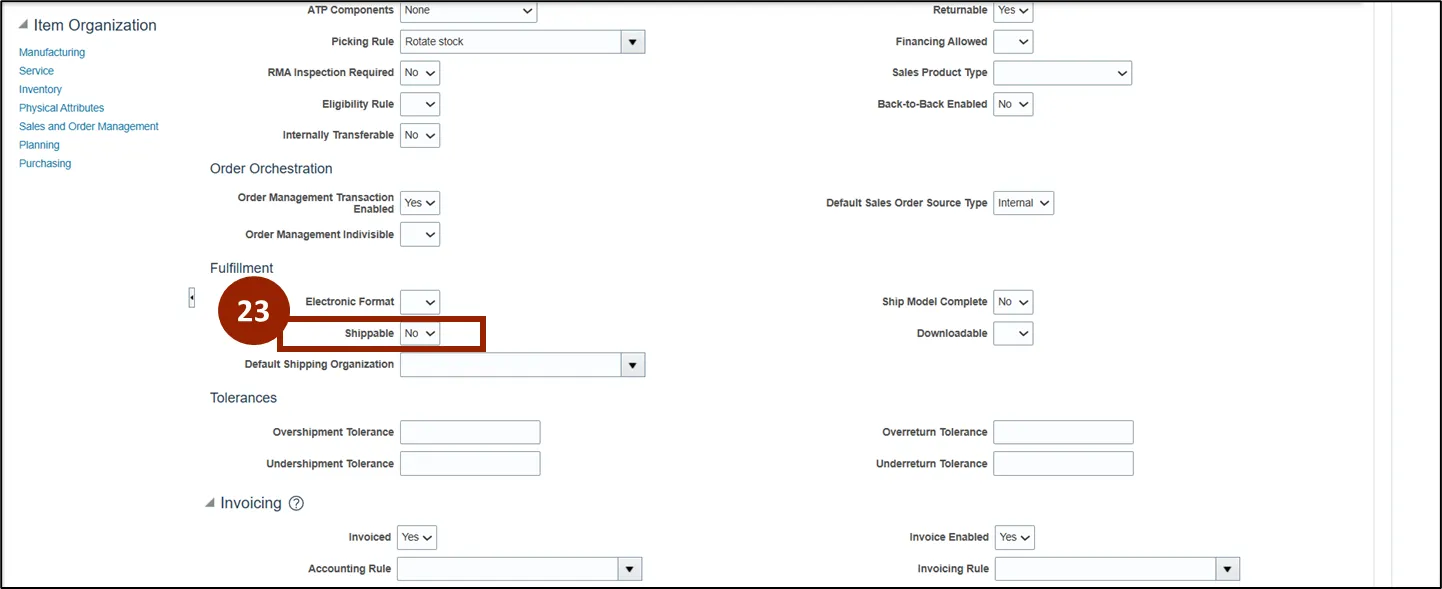 Step 23. From the Shippable drop-down within the Fulfillment section, select No.