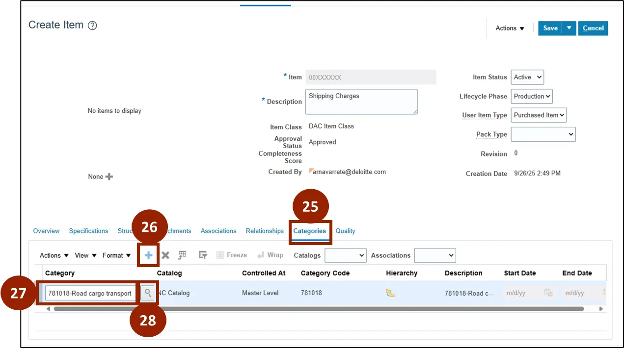 Step 27. In the Category field, enter 781018-Road cargo transport.