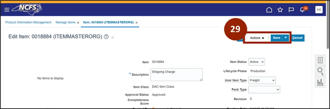 Step 29. Scroll to the top of the Create Item page and select Save.