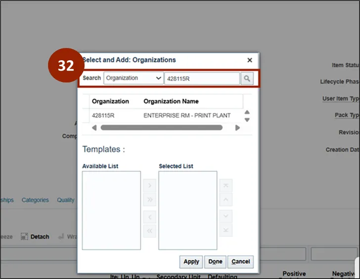 Step 32. In the Search field, search the organization to associate the item where it will be utilized, then click the Search icon.