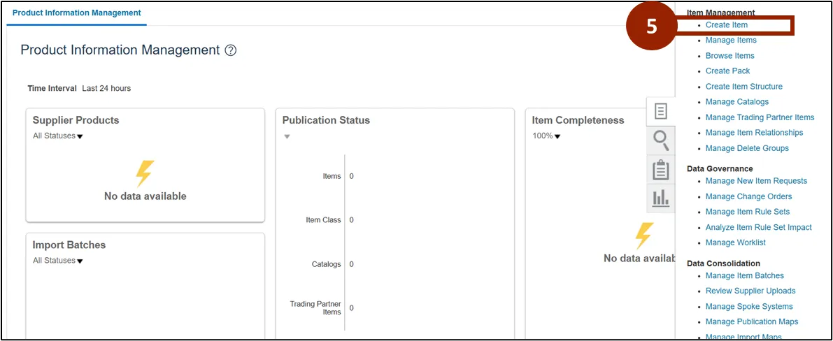 Step 5. Under the Item Management heading, click Create Item.