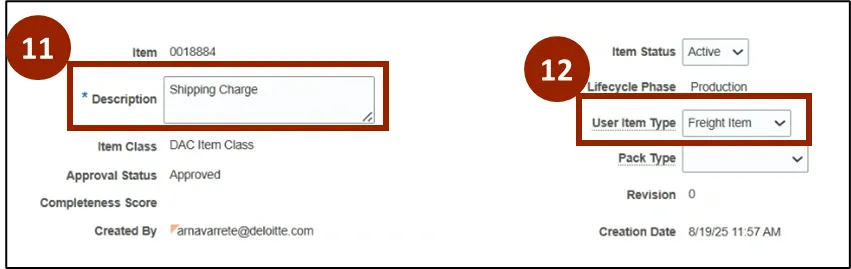 Step 12. From the User Item Type drop-down, select Freight Item.