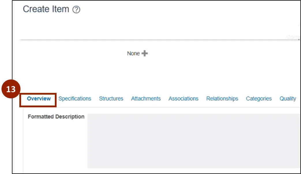 Step 13. On the Create Item page, navigate to the Overview tab.