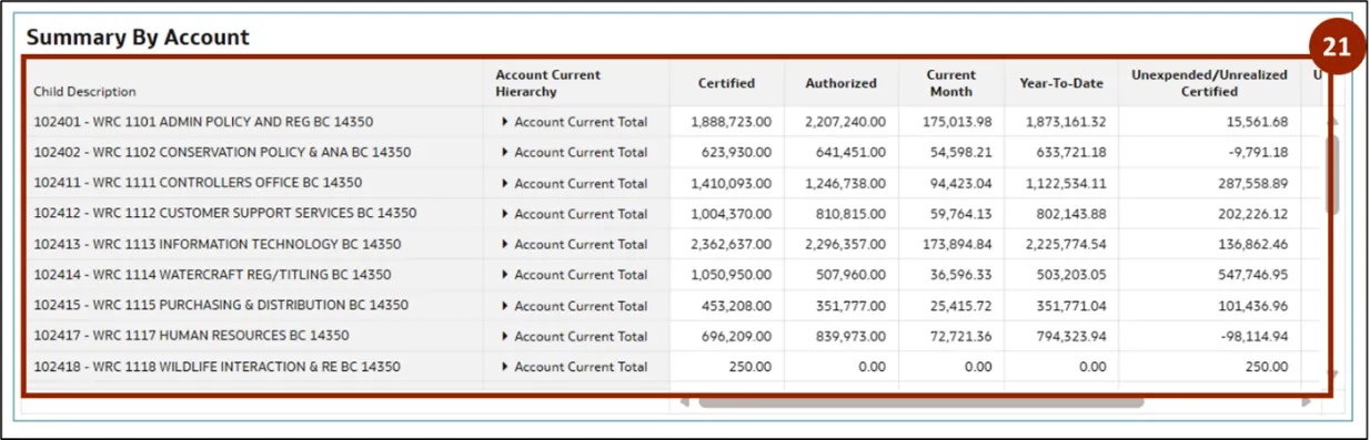 Note: The report contains several tabs: Budget Code Recap, Summary By Purpose, Summary By Account, and Adjustment To Cash Basis. Most self-service activities will be performed in the Summary By Account tab.
