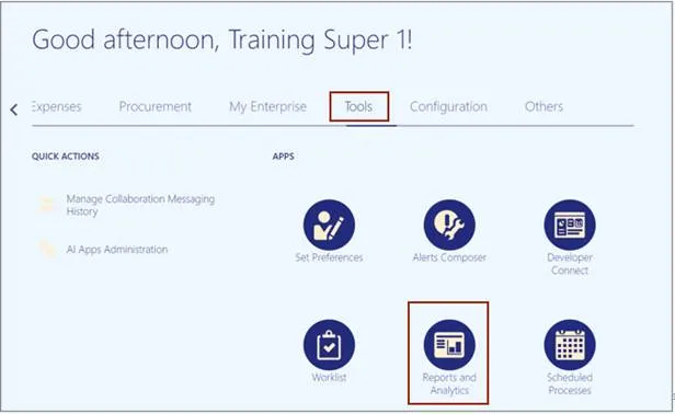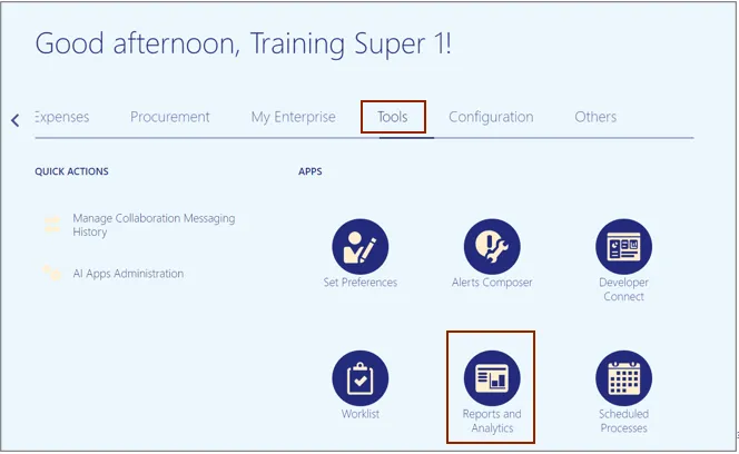 Step 2. On the Home page, click the Tools tab and click the Reports and Analytics app.