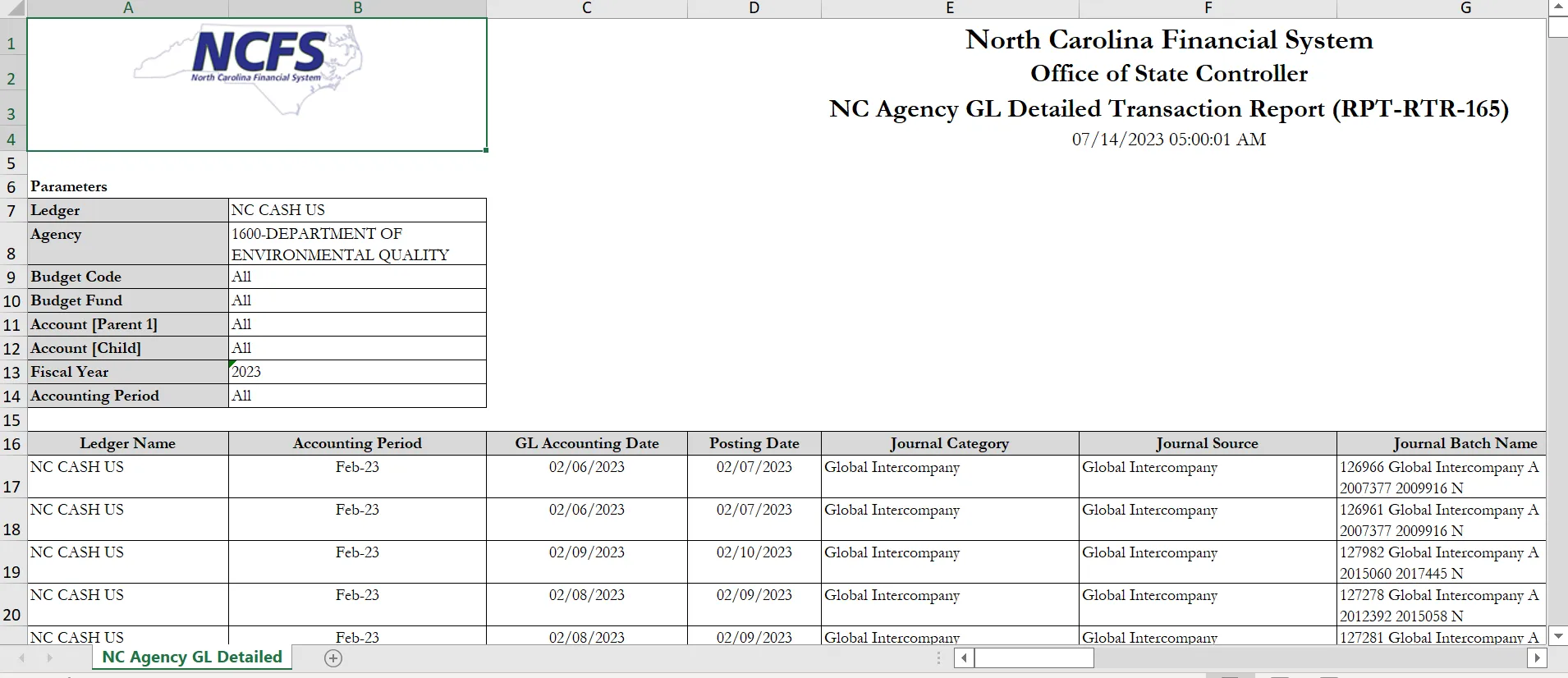 NC Agency GL Detailed Transaction Report (RPT-RTR-165)