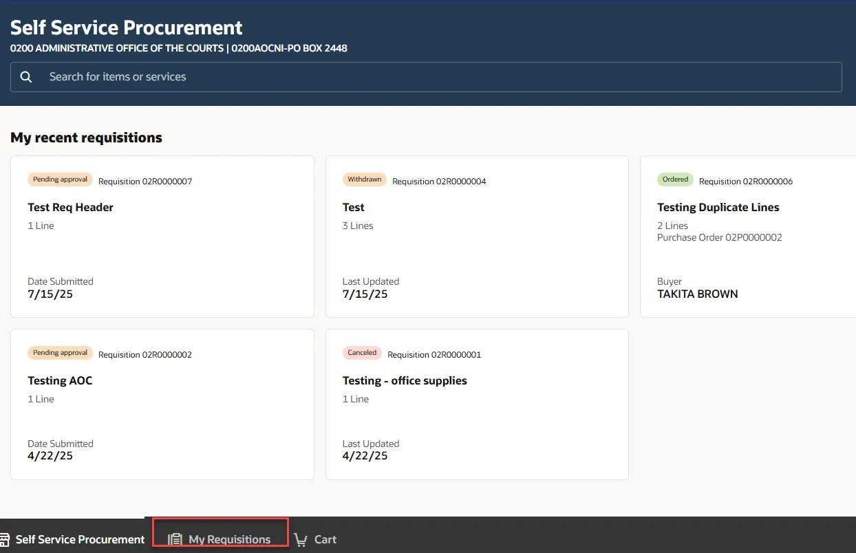 Step 3.    On the Self-Service Procurement dashboard, select My Requisitions.