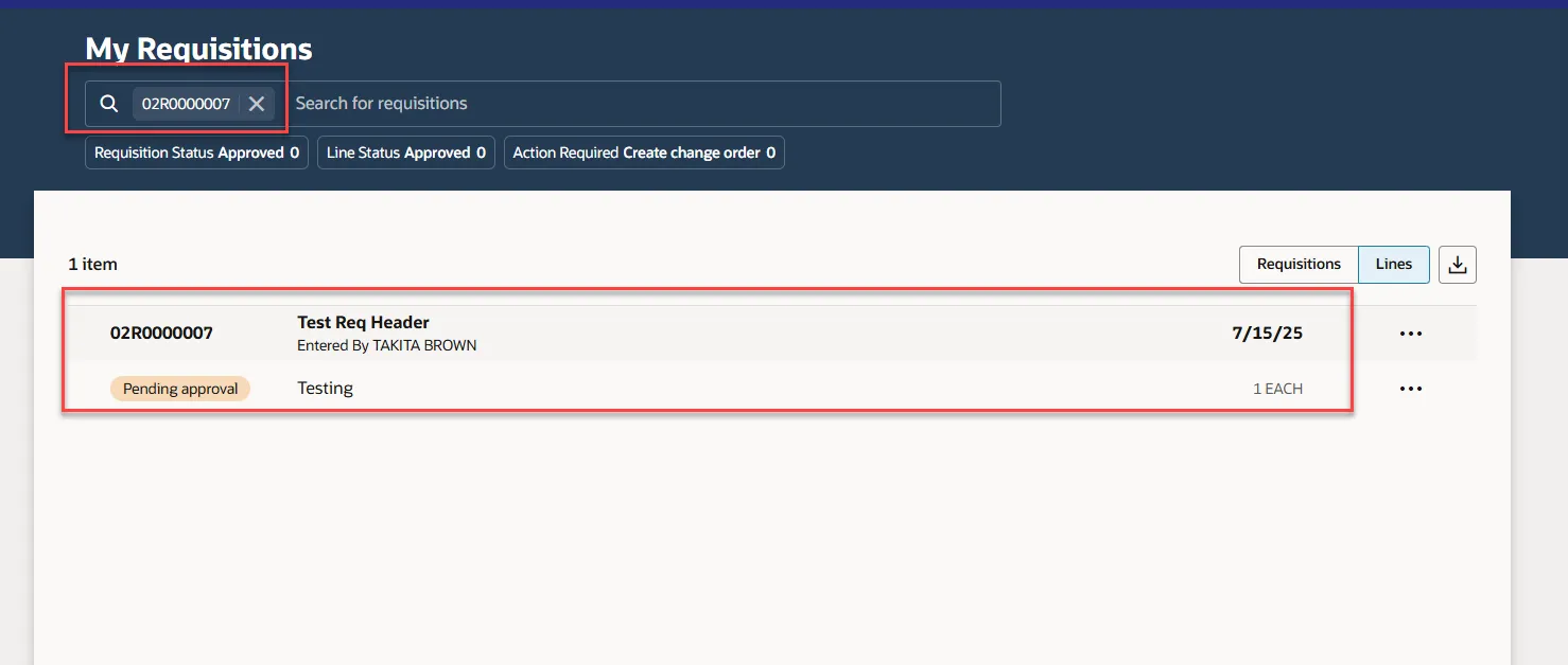 2. Requisition should be in incomplete status and stuck in approval workflow.