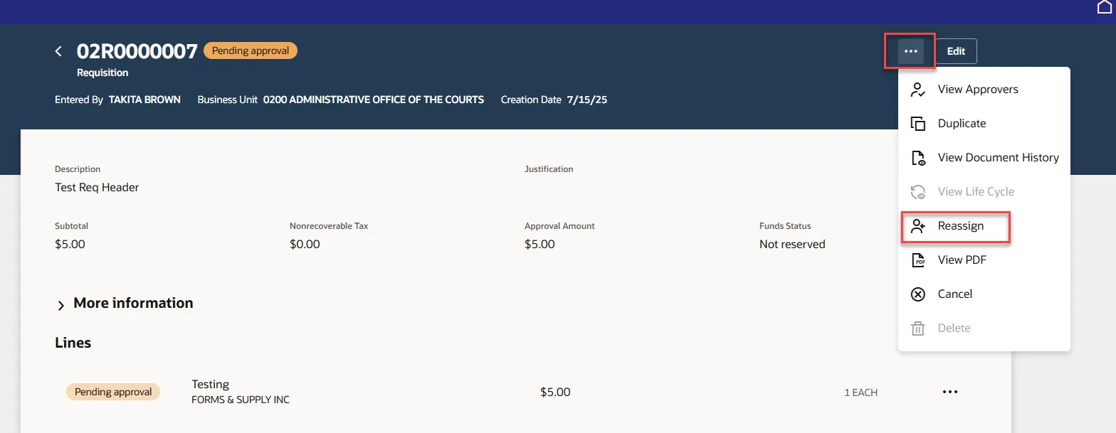 Reassign requisitions to others using the steps above. By utilizing this feature, users gain the ability to delegate requisitions to other personnel, thereby facilitating streamlined workflow management and effective task distribution.