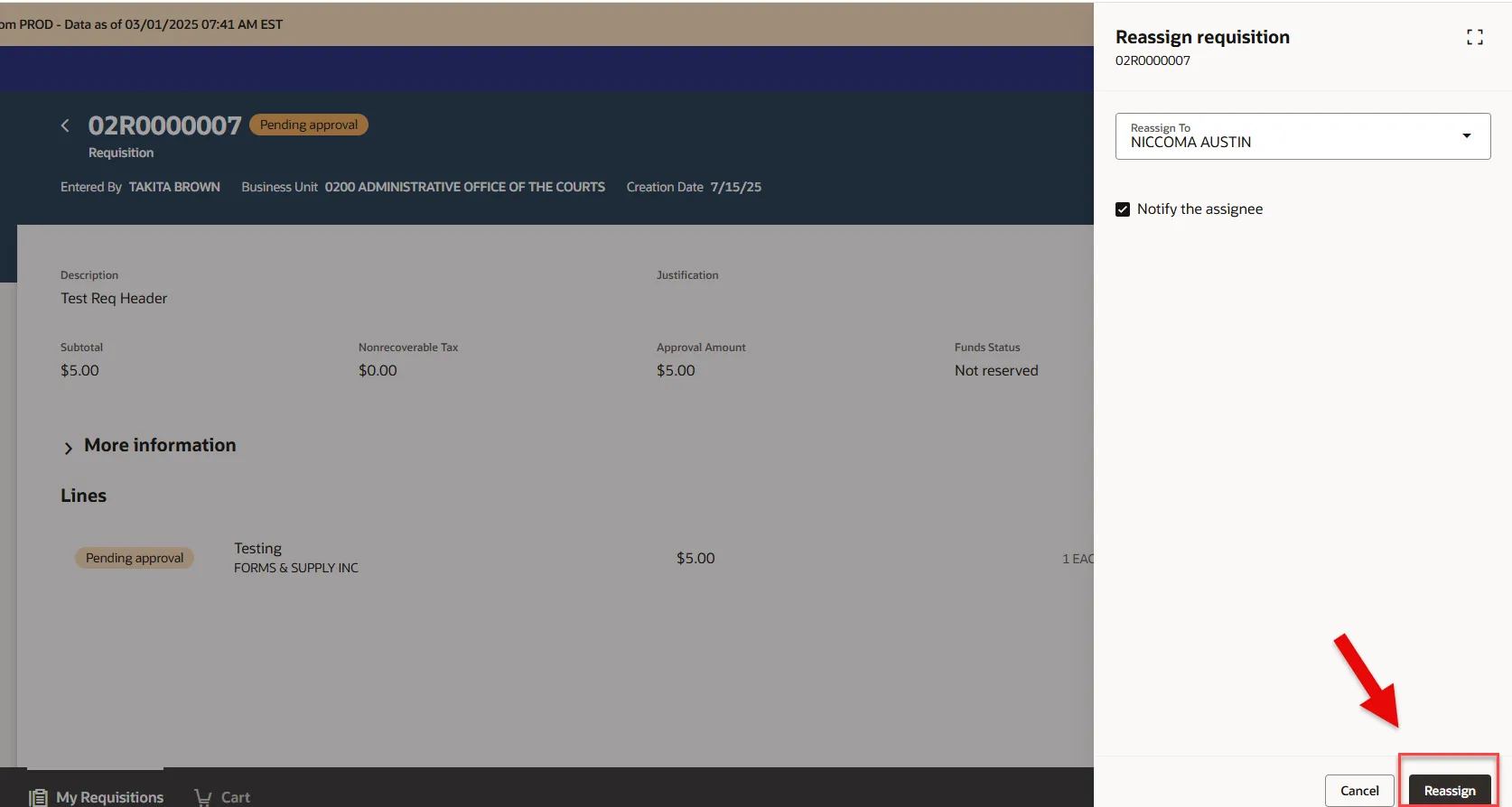 PO-02 Ability to Reassign Requisitions to Others