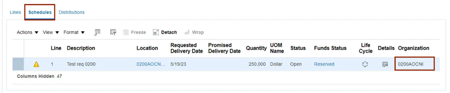 Step 8. Validate the Schedules section information. Check the Organization field.